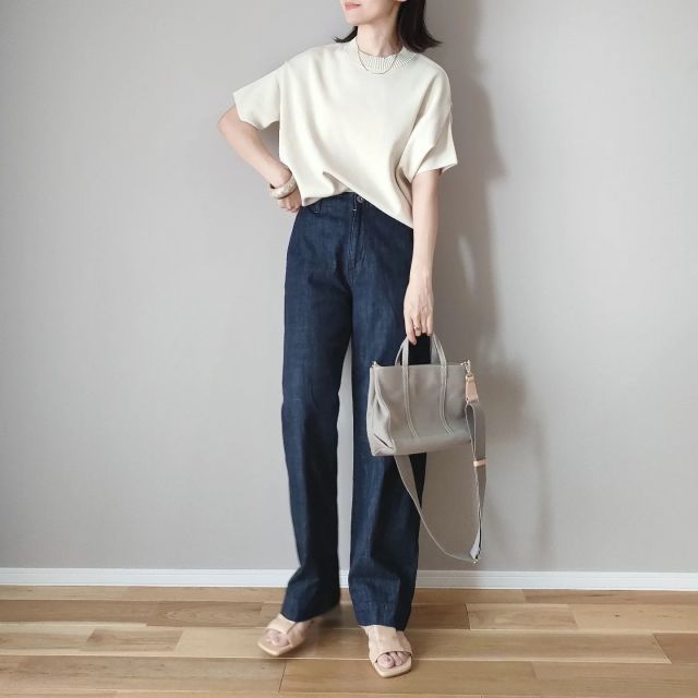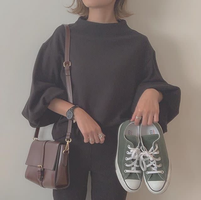 ハイネックを短くしたような「モックネック」。襟元がキュッと締まっているので、コーデに上品な雰囲気を演出できます。