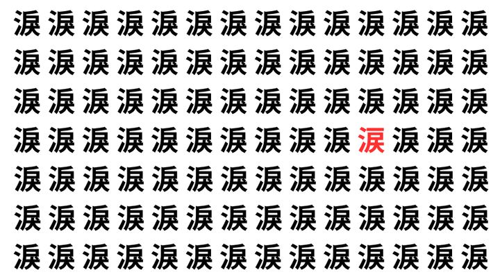 たくさんの「淚」の中に、よく似た別の漢字が1文字だけ隠れています。