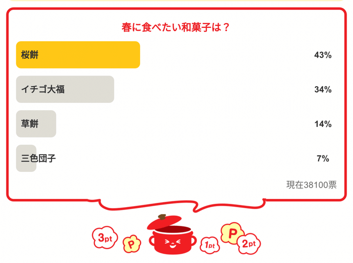 3. 「春に食べたい和菓子は?」<回答数38,100票>【教えて! みんなの衣食住「みんなの暮らし調査隊」結果発表 第487回】