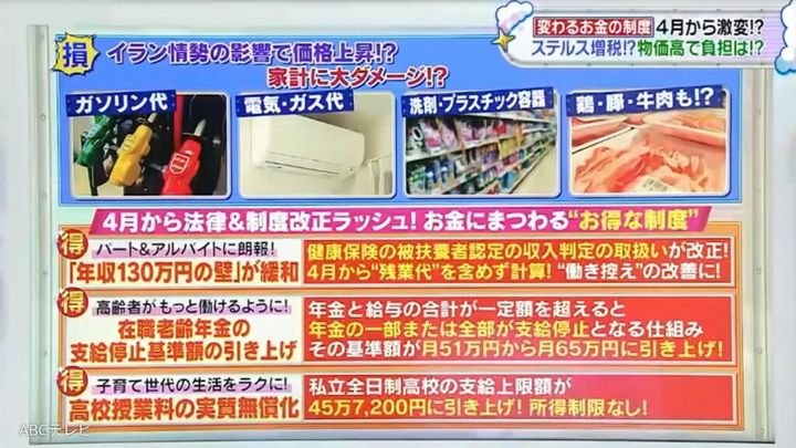 なお、新年度以降に変わるお金にまつわる制度は、3月28日に生放送された情報バラエティ番組『教えて!ニュースライブ 正義のミカタ』(ABCテレビ)で取り上げられた。