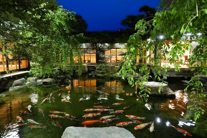 庭園の山水にある巨大な石灯籠や輪塔は、慶び事や人を驚かせることが大好きで豪快な人柄だったという初代総料理長兼店主の本多次作が、それぞれが夫婦(めおと)になるよう各地から運ばせたものなのだとか。800坪の広大な料亭は、耐震工事や改装修繕などを行いながら、いまなお昔の姿を残しています。