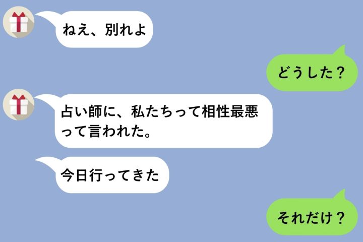 3. 彼女『別れよ』突然のメッセージ→理由を聞いたら『占い師に相性最悪って言われた』と言われて…