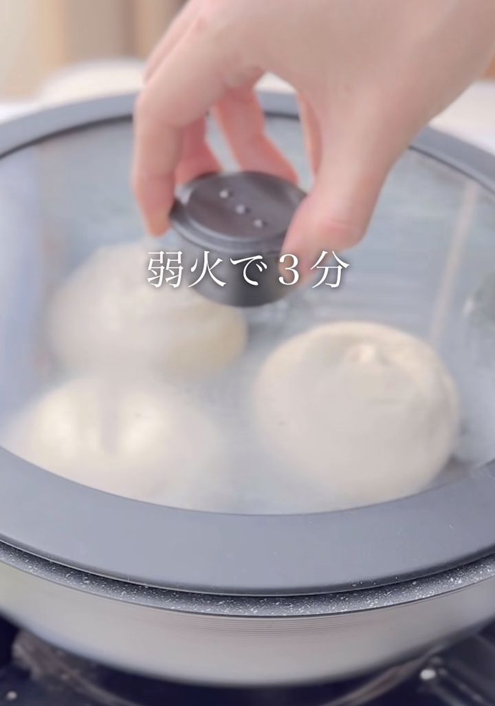 しっかり蒸気で膨らませるために、深さがある蓋付きのフライパンを使ってくださいね。