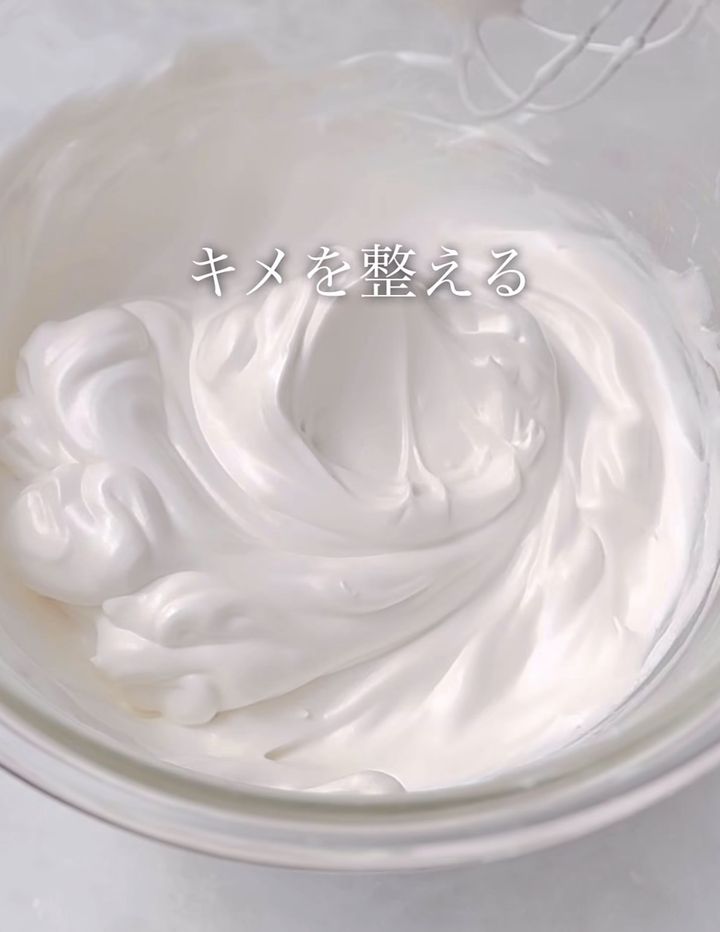 ※卵白は使う直前まで冷蔵庫(または冷凍庫で少し)しっかり冷やしておくのが最大のポイント!冷たい卵白ほど、キメが細かく潰れにくい、しっかりしたメレンゲになります。