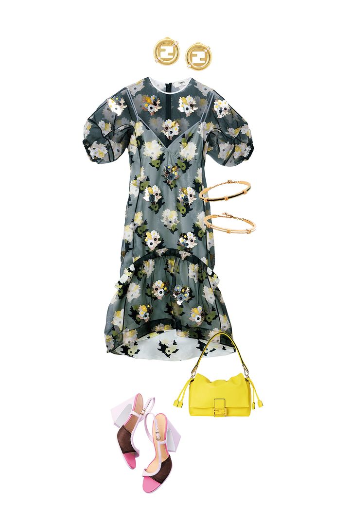 ワンピース¥1,265,000[参考価格] バッグ¥492,800 靴¥173,800 ピアス¥71,500 ブレスレット各¥67,100(すべてフェンディ/フェンディ ジャパン)