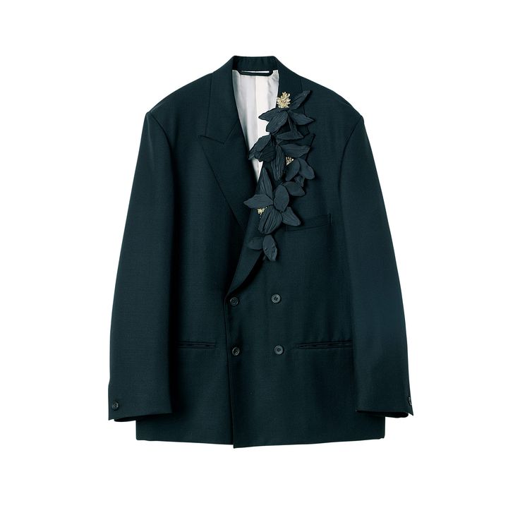 端正な黒ジャケットを、存在感あふれる大ぶりのフラワーコサージュでドレッシーな雰囲気にアップデート。アクセサリーいらずのインパクトゆえ、ハレの日の装いにもおすすめ。