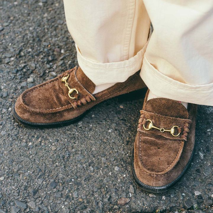 足元は『ハルタ』と『ビショップ』のビッグコラボのシューズ。裾をロールアップして、バランスを取ったのはお見事!