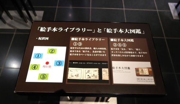 タッチパネル「絵手本ライブラリー」と「絵手本大図鑑」 『北斎を学ぶ部屋』 すみだ北斎美術館