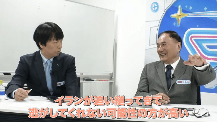隣の青山氏が「イランも相当攻撃受けて、そうは言ってもイランだって継戦能力の限界がある。イランだってやめたいっていうことはないんですか?」と質問を重ねると…