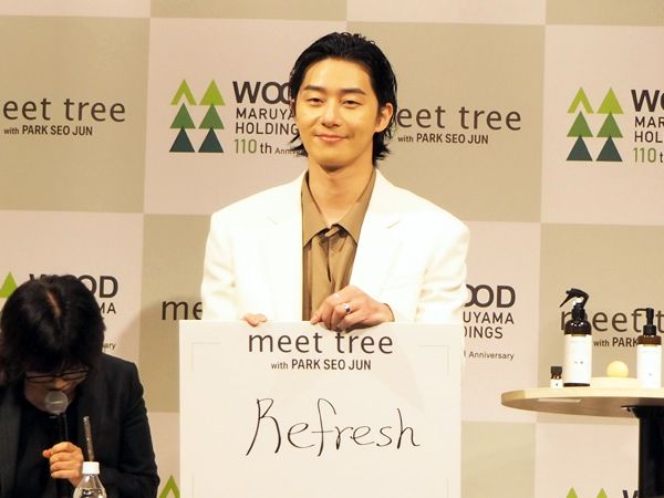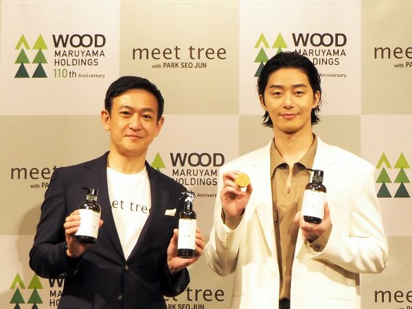ここでパク・ソジュンさんとの出会いについても言及。それはまさに“運命的”なものだったそう。「パク・ソジュンさんが日本に滞在中、とあるお寿司屋さんで弊社のハンドソープを使っていただいたことが、今日のご縁に繋がりました。森の素晴らしさと、パク・ソジュンさんの持つ自然体の美しさ、これほどマッチする方はいないと思っています」 と、丸山さんは語りました。