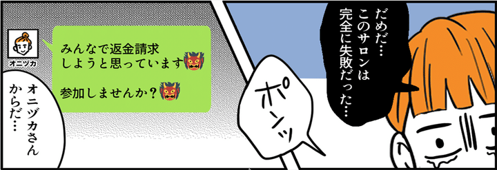 失敗も含めて経験値のための勉強代ってことで、自分を納得させるしかないのかも……。私もそう思いはじめていました。すると同じ受講生であるオニヅカさんから「返金請求に参加しませんか?」というメッセージが届いたのでした。