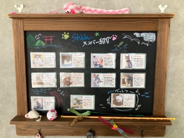 猫達の可愛いメンバー紹介ボードを眺めてあなただけの押し猫を見つけてみてはいかがでしょうか