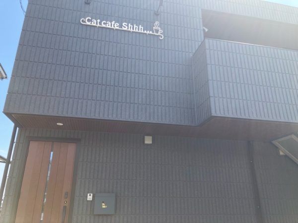 優しいお姉さんーという雰囲気ですが,強い思いで猫たちのお世話をされています。阿品台にたたずむグレーのスタイリッシュな建物。一見、猫カフェっぽくない雰囲気。駐車場は建物正面に2台あります。右手の外階段を上がって2階がシニア猫達の居場所です。