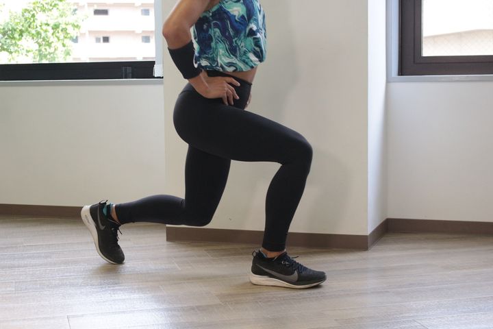 3.背筋を伸ばし、ゆっくりと前方の脚を曲げていく