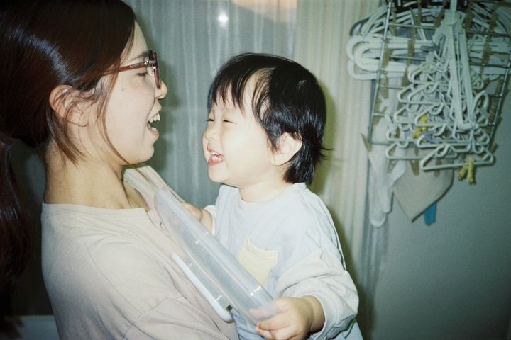 添えられた写真には、お互いを見つめ合い、心の底から笑い合うお母さんとお子さんの姿が写し出されています。