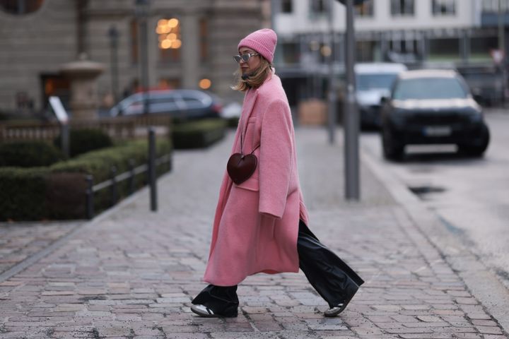まるでバービーのような、ピンクのコート&ニットキャプの着こなし。乙女心を満たす冬コーデは、ブラウンのハート形バッグでシックに遊び心をのせて、ときめきを忘れずに。
