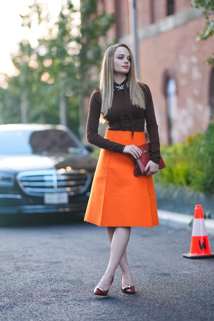 フォトジェニックに映えるオレンジのフレアスカートに、馴染みのよいブラウントップスが好セレクト。合わせたブラウン小物はかっちりとしたデザインを選ぶことで、よりエレガントにクラスアップ。