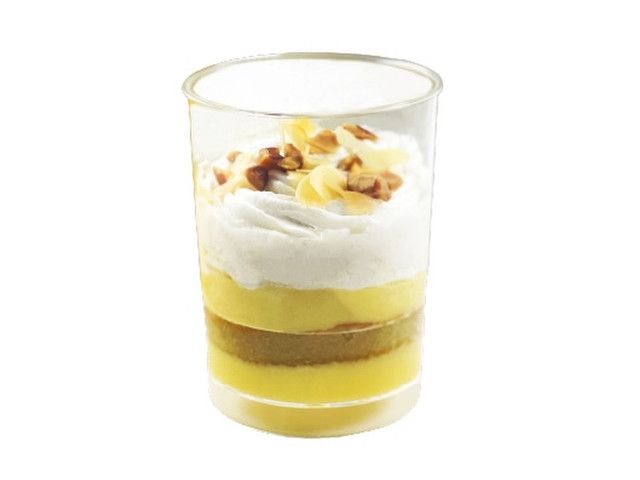 バナナピューレを練り込んで焼き上げたスポンジを、カスタードクリームでサンドし、ホイップクリームでダイスカットバナナを包み込むように絞りました。 ローストアーモンドのスライスとダイスをトッピングして仕上げています。 【販売地域】沖縄