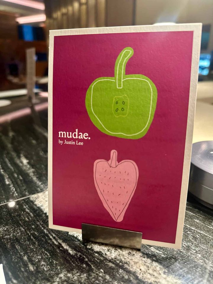 韓国語で「舞台」を意味する「ムデ(MUDAE)」と名付けられたデザートバーは、韓国で高い評価を受けるパティシエJustin Lee(ジャスティン・リー)氏が手がける新たなレストラン。食べた瞬間に「これは料理?それともスイーツ?」と問いかけたくなるような、双方の境界線を軽やかに飛び越える、驚きに満ちたコースの全貌をお届けします。
