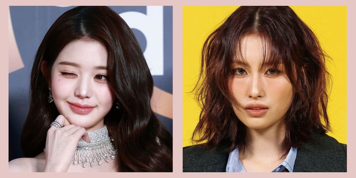 (左)Z 世代の憧れの的ウォニョンは鼻の頭にちょんとのせたハイライトで鼻先をほっそり見せる。(右)鼻根と鼻筋の左右に入れたノーズシャドウで立体感を強調するモモ。 Getty Images