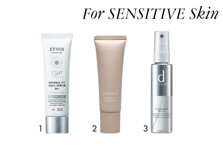 「肌荒れしている人は塗り重ねると摩擦が刺激になるうえ、仕上がりも汚くなりがち。肌を乾燥や紫外線から守る下地と1つで完成するBBクリームなど最小限のステップに。摩擦を防ぐなら、水を含ませたスポンジにBBクリームをなじませてポンポンと塗り広げると◎。刺激から守るスプレーを取り入れるのもアリ」