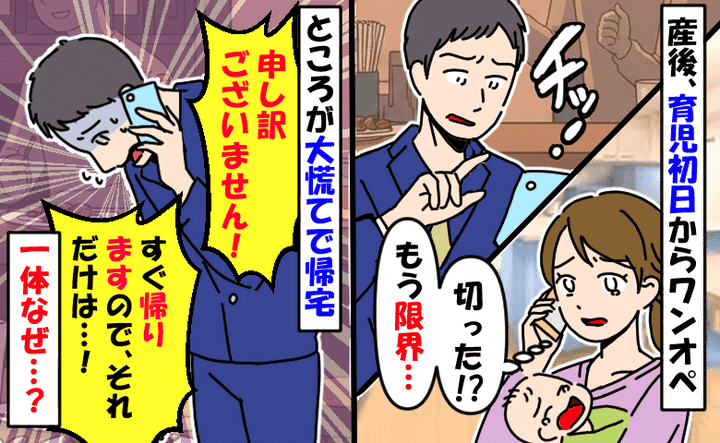 産後、育児初日から飲みに行く夫「電話切られた…最低」ところが大慌てで帰宅!?夫の身に一体何が