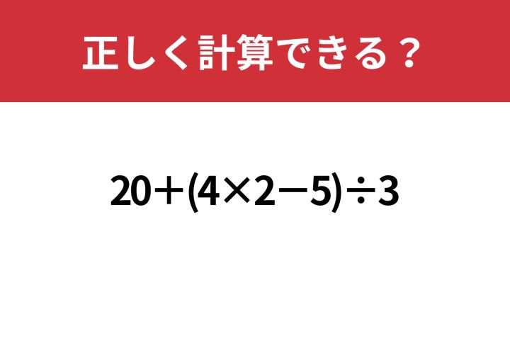 基礎が完璧な人にしか解けない!「20+(4×2−5)÷3」正しく計算できる?