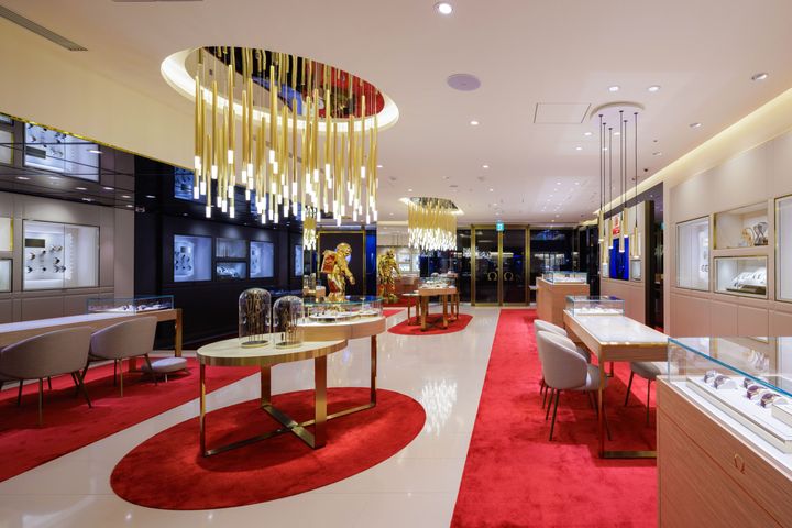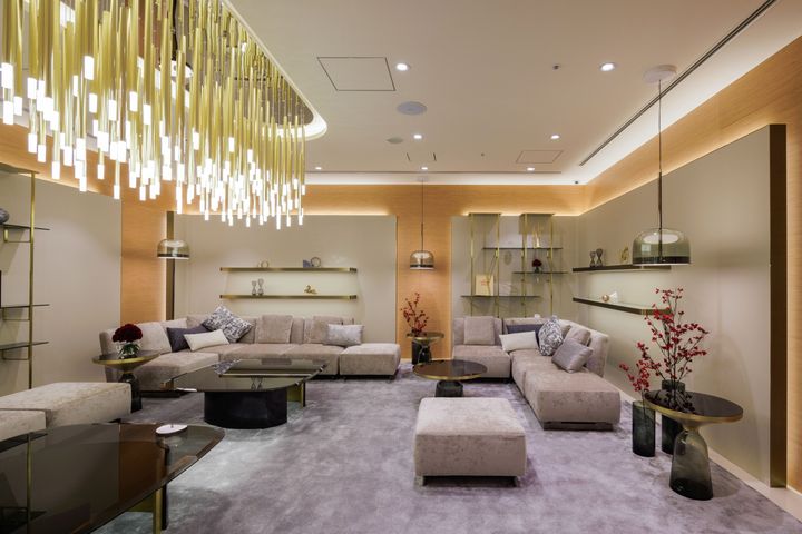 中には「ムーンラウンジ」と呼ばれる、特別な個室も。オメガ独自のゴールドである“ムーンシャインゴールド”を想起させるような明るいゴールドを基調に広々としたつくりになっており、ゆっくりと時計選びをしたい人にぴったりです。