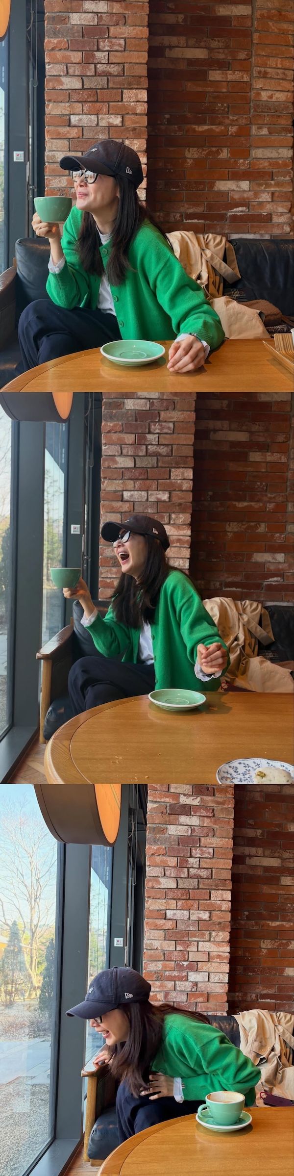 公開された写真の中で彼女は、翡翠色のティーカップが目を引くカフェでティータイムを楽しんでいる。まるでカップと色を合わせたかのように深緑色のカーディガンを羽織っており、春の新芽のような爽やかな印象を与えている。