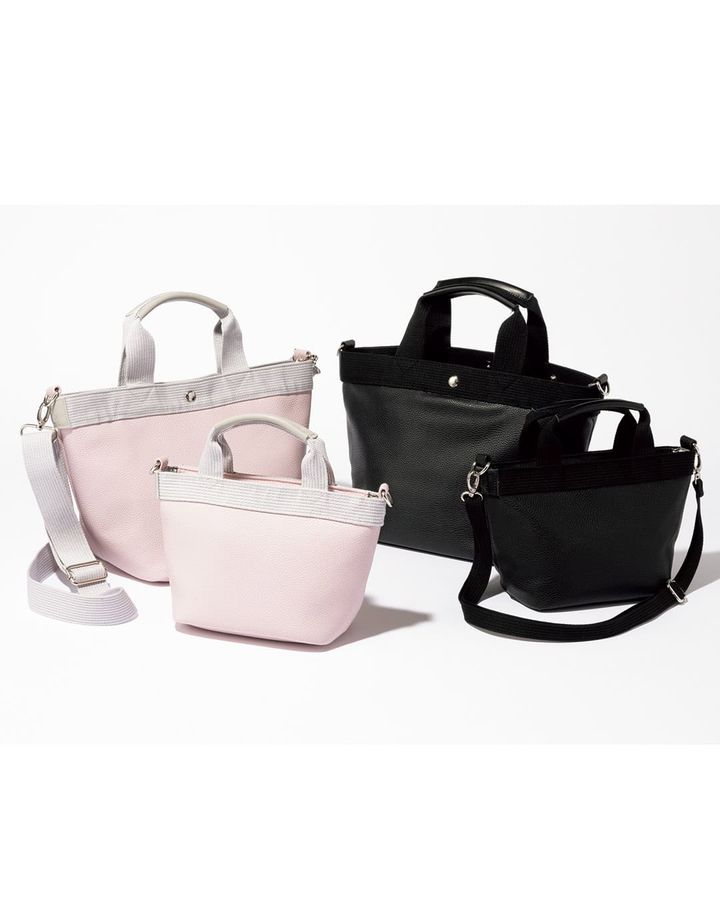 人気のブラックは買えるSTORYの先行入荷、ピンクはSTORY限定!本革のようなシボ感と発色。軽くて雨の日も気軽に使えるPUレザーを使用しています。内側の吊りポケットがフタにもなるので、中身が見える心配もなし。