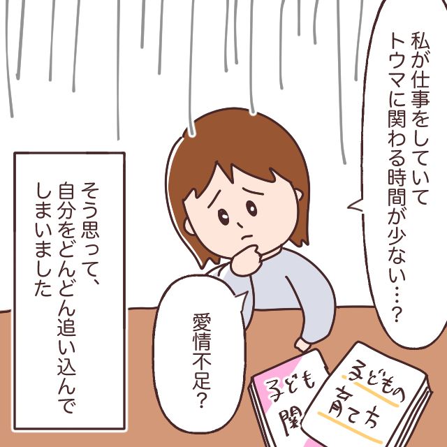 そして、「私が仕事をしていてトウマに関わる時間が少ない・・?愛情不足?」と考え込み、自分をどんどん追い込んでしまったのでした。