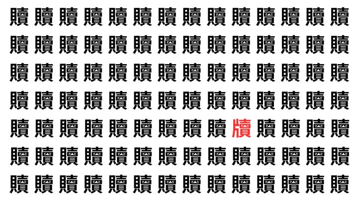 たくさんの「贖」の中に、よく似た別の漢字が1文字だけ隠れています。