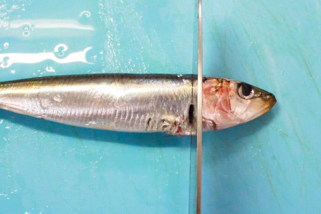 イワシはわたを出す時に腹下を切っているので、フォークで身がほろっと外れました。