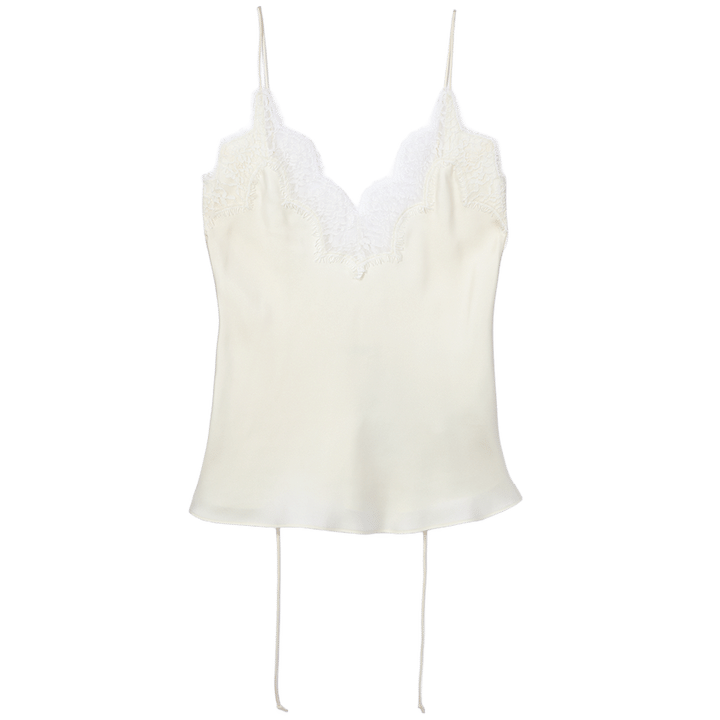 「背面までぐるりとレースが施されたキャミは、ボーイズライクなショーツと合わせたい」キャミソール¥74,800(ローエ/ビオトープ)