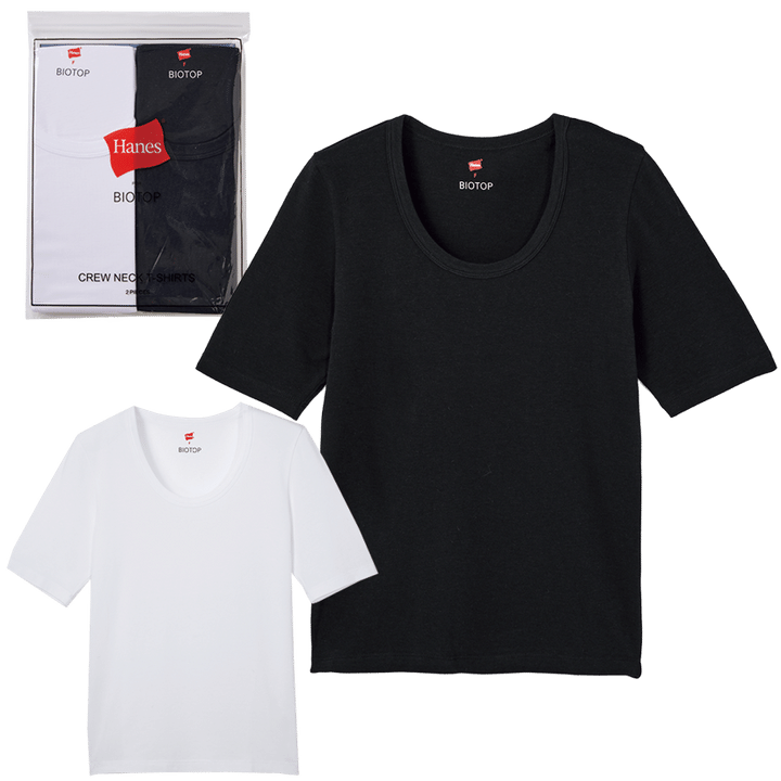 「新型はコンパクトで袖丈が少し長いシルエット」Tシャツ¥7,700※2枚セット(ヘインズ フォー ビオトープ)