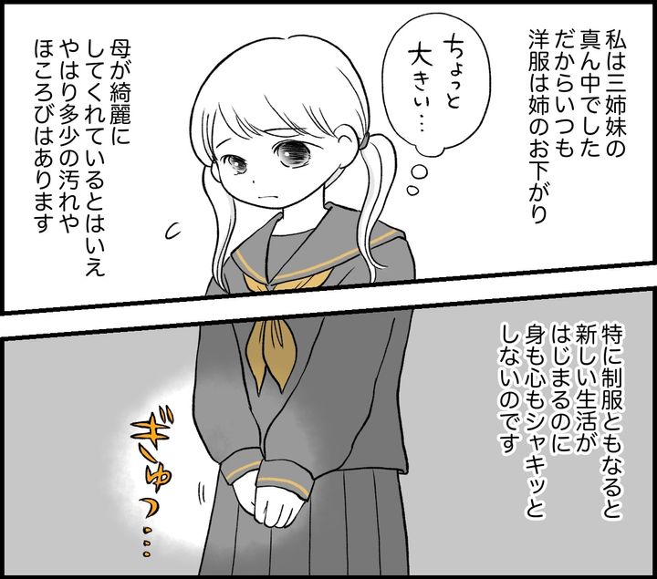 いつも洋服は姉のお下がりばかりでした。綺麗な状態なら、私と姉が着たものは妹へ回ります。しかし、だいたいは汚れてしまったり、流行が終わってしまっていたりで、妹は新しいものを買ってもらっていることが多かったのです。私ばかりお下がり……。そんな気持ちを自分の子どもにはさせたくありません。