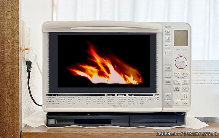 電子レンジ内に残った食品カスにマイクロ波が反応し、焦げや煙、さらには発火につながる可能性もあるとのことです。