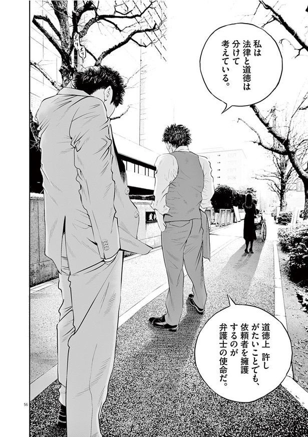 ひき逃げの被害者家族が病院で絶望の悲鳴をあげる頃、加害者は拘置所の布団で気持ちよさそうに寝ている――そんな場面を目の当たりにすれば、誰だって思わず顔をしかめるに違いない。よくある弁護士モノは、主人公の尽力により“正義”が勝つさまが爽快に描かれるが、この作品は違う。九条が従うのは法律。何が正義だとか何が悪だとか、そういうモラルは一切関係ない。だから、九条は“悪”としか思えない依頼人たちを守り、執行猶予をつけたり、量刑を軽くしたりする。……ああ、クズでもなんでも、金を出せば弁護士を雇うことができるし、その弁護士の腕次第でその後の人生はこんなにも変わるのか。