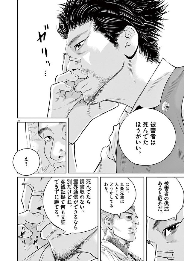 この物語を読むなら、「弁護士は弱い者を守ってくれる存在」だなんて甘い考えは捨てた方がいい。たとえば、ある時、九条が弁護することになったのは、ひき逃げをした半グレ。その男は、事件当時、飲酒運転をしていた上にスマホでゲームをしていたという。「スピード出して脇見運転してるから轢き殺したなら危険運転致死。求刑は10年。過失運転致死なら執行猶予」と九条が告げると、男は「長い懲役だけは絶対にカンベンしてほしい。轢いた奴、生きててくれねぇかなぁ」と漏らす。それに対し、九条はとんでもないことを口にするのだ――「被害者は死んでたほうがいい」。そして、この半グレに九条はある策を授けて……。