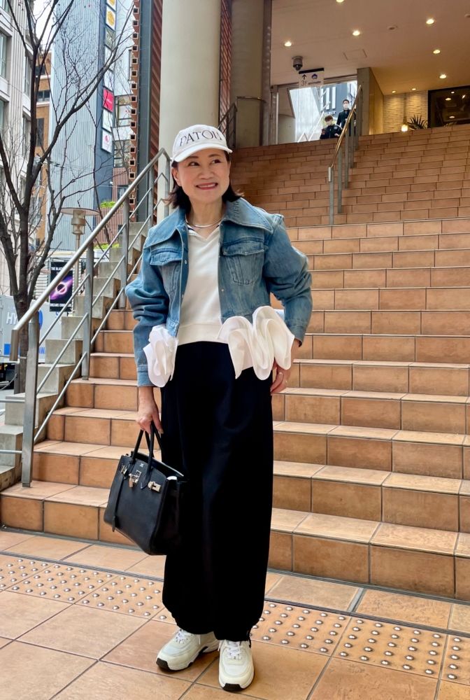 3. 【60代お手本スナップ】カジュアルアイテムを品良く!春の訪れをたのしむ大人かわいいデニムジャケットコーデ