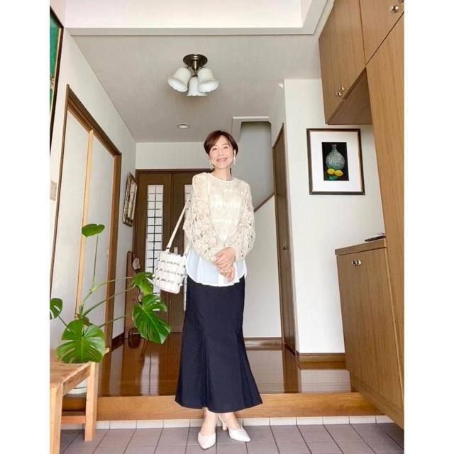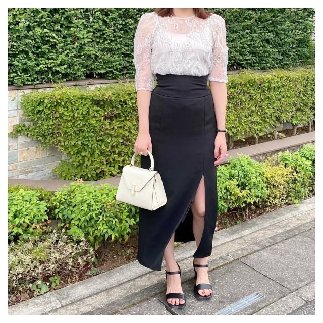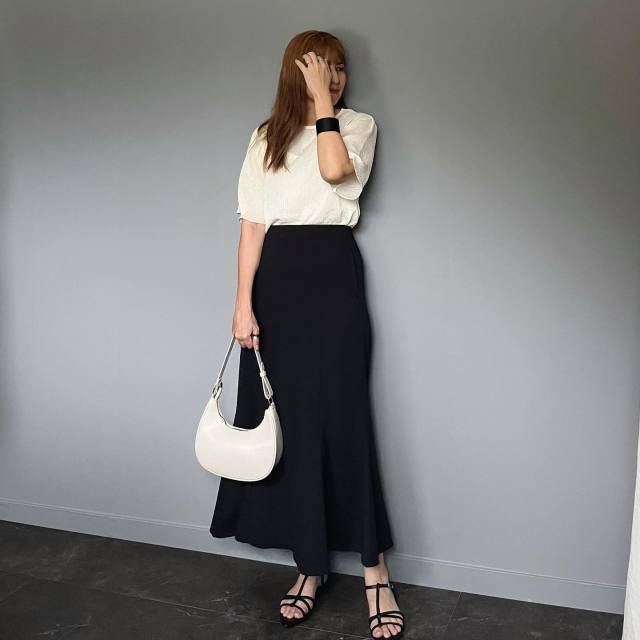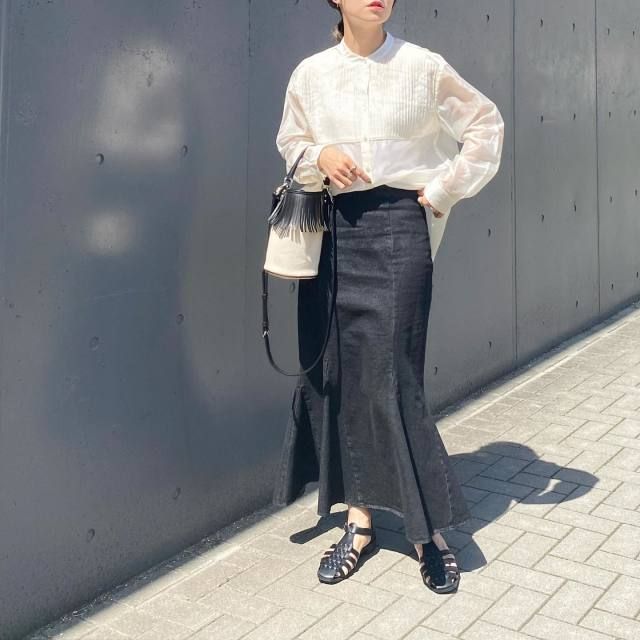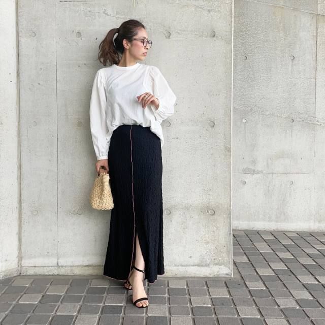 白ブラウス×黒マーメイドスカートのコーデ