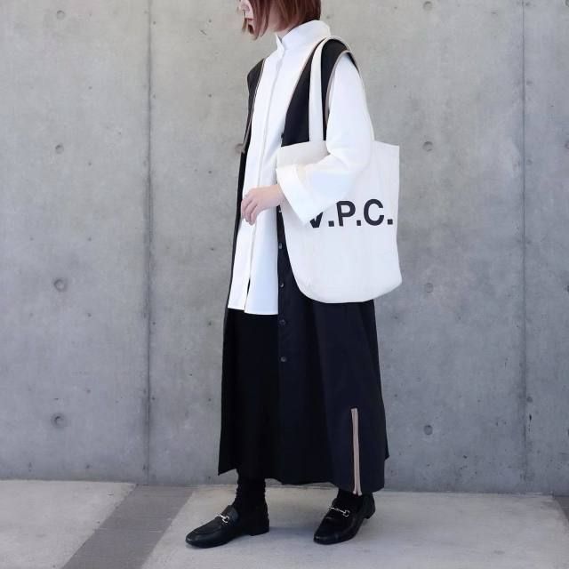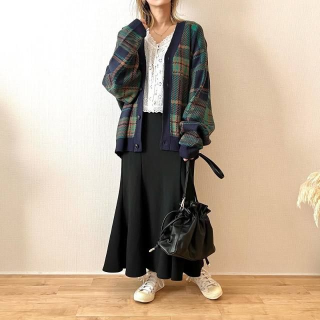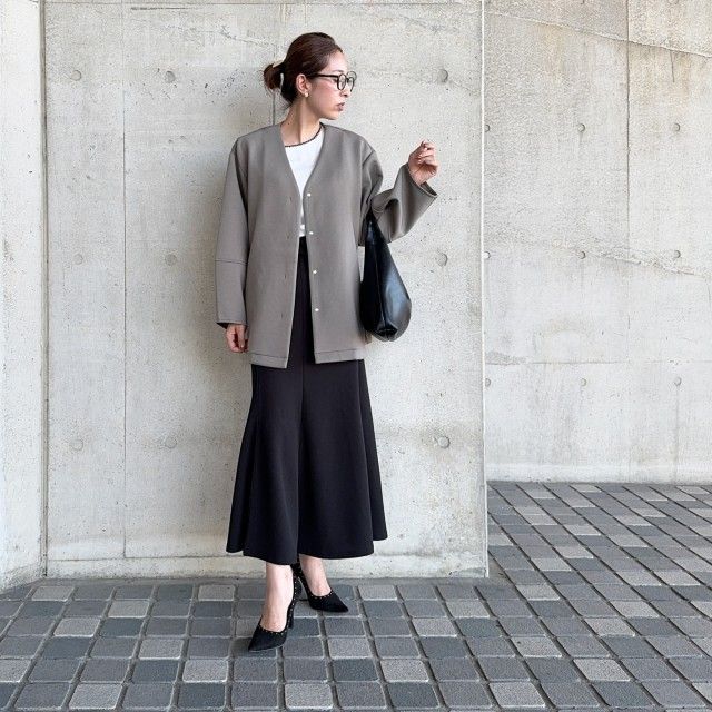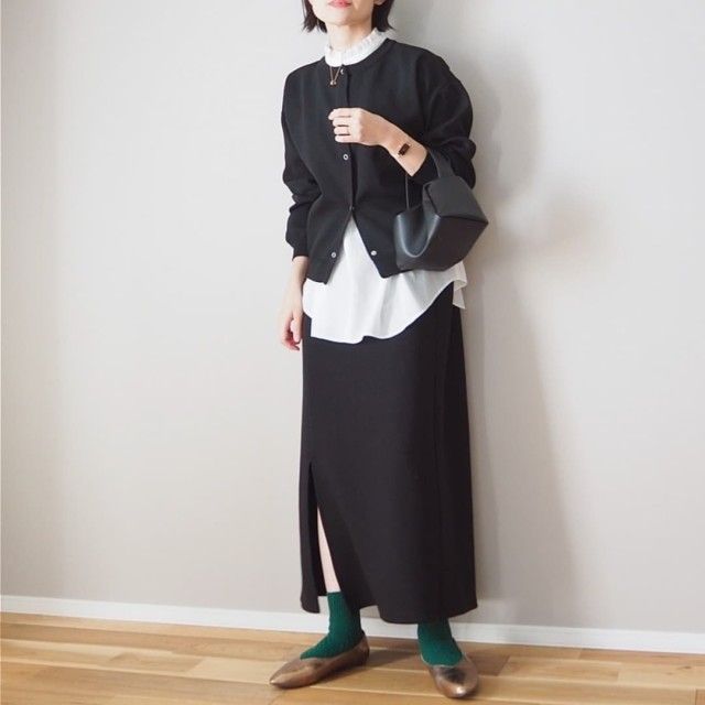 白ブラウス×黒スカートのレイヤードコーデ