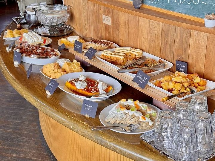 また、しろまるがミルクホールを訪れた2月23日(祝)はイベントデーということで、地元出身のパティシエ・Megumiさんと、移住者のバリスタ夫妻・Ioriさん&Hinaさんをスペシャルスタッフに迎えた「ケーキとコーヒーのビュッフェ」が開催されていました。 ビュッフェは1年に1回程度しか開催されないレアイベントだそうで、旅の運命を感じたしろまるはもちろん参加してきました。(事前予約制/75分/大人1名3,500円)