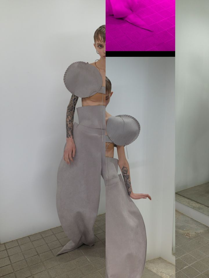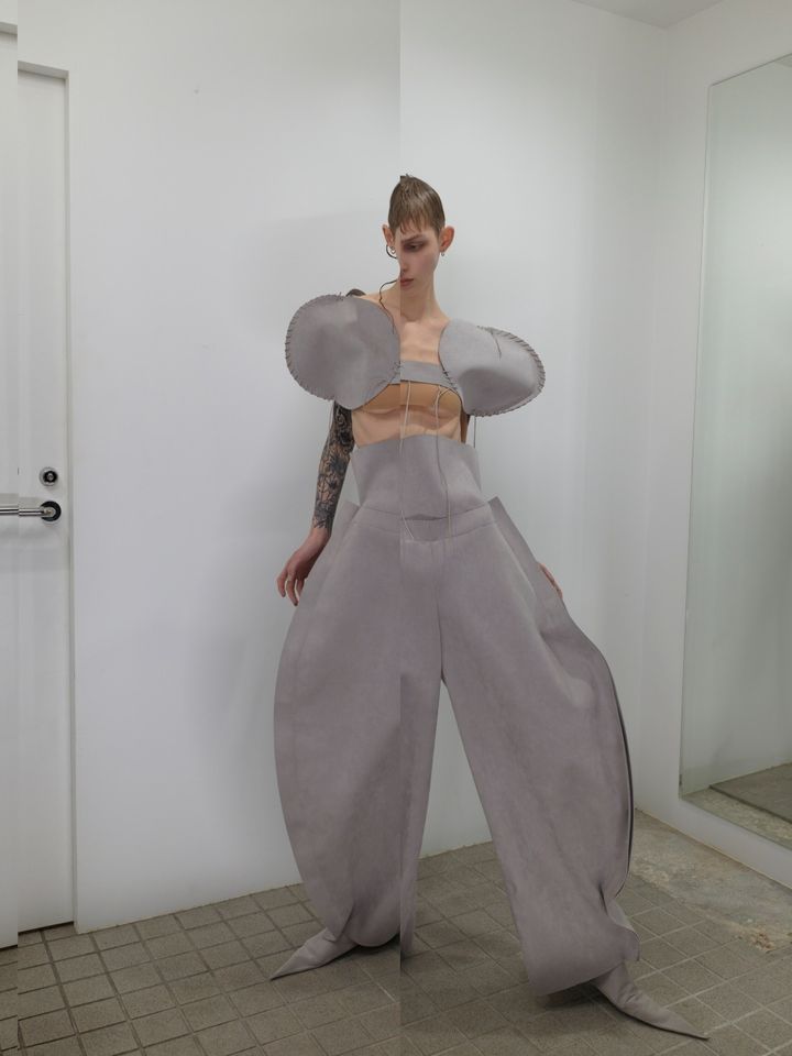 その体験を日常の反復の中に持ち帰り、身体拡張や可動域といった要素をコレクションへと落とし込んでいる。