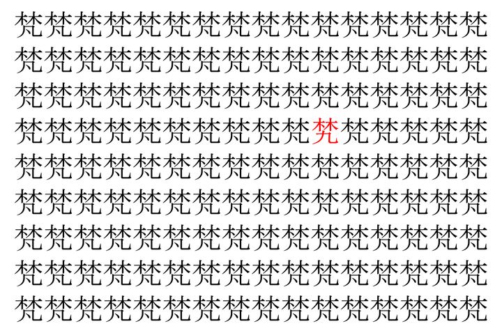 2. 【脳トレ】「梵」の中に紛れて1つ違う文字がある!?あなたは何秒で探し出せるかな??【違う文字を探せ!】