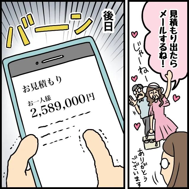 「見積もり出たらメールするね!」とご機嫌で帰って行った義母。そして後日、義母から送られてきたのは『お一人様2,589,000円』という想像をはるかに超えた見積もり金額で・・思わずスマホを持つ手が震えました。