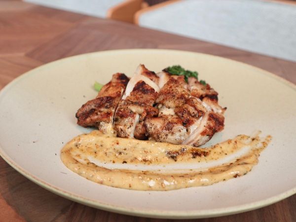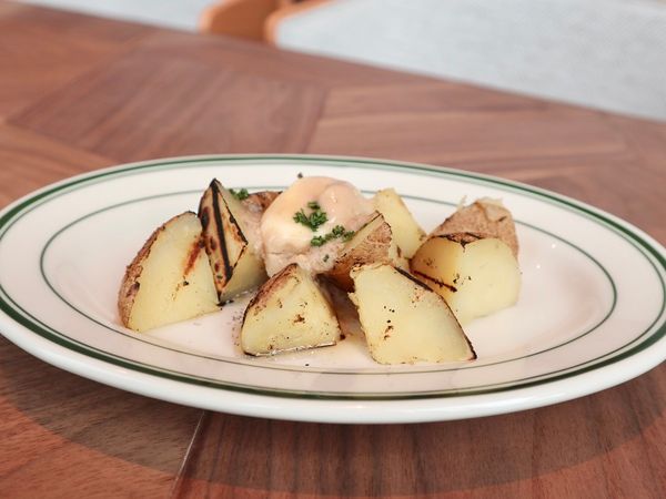 炭焼きならではの香ばしさがふわり漂います! お肉はしっとり柔らかく、じゃがいもは甘さとほくほくとした食感が格別。ソースが食材の味わいを引き立たせます。