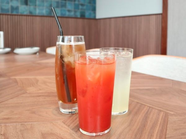 ドリンクはアルコールからソフトドリンクまでバラエティ豊か。店名を冠した「ROBACEティーソーダ」は炭酸にお茶の香りが溶け込み、見た目も味もおしゃれ。