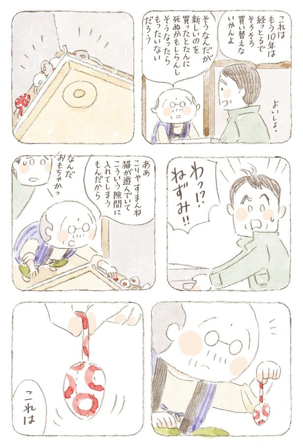 3. 洗濯機の裏に溜まった猫のおもちゃ。中には亡きばあさんとの思い出の品も/ねことじいちゃん10(47)