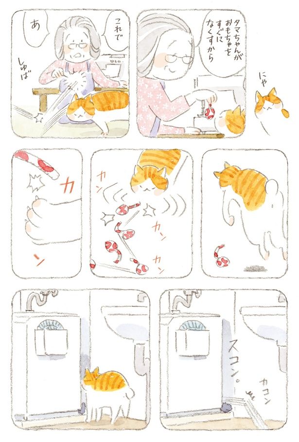 洗濯機の裏に溜まった猫のおもちゃ。中には亡きばあさんとの思い出の品も/ねことじいちゃん10(47)